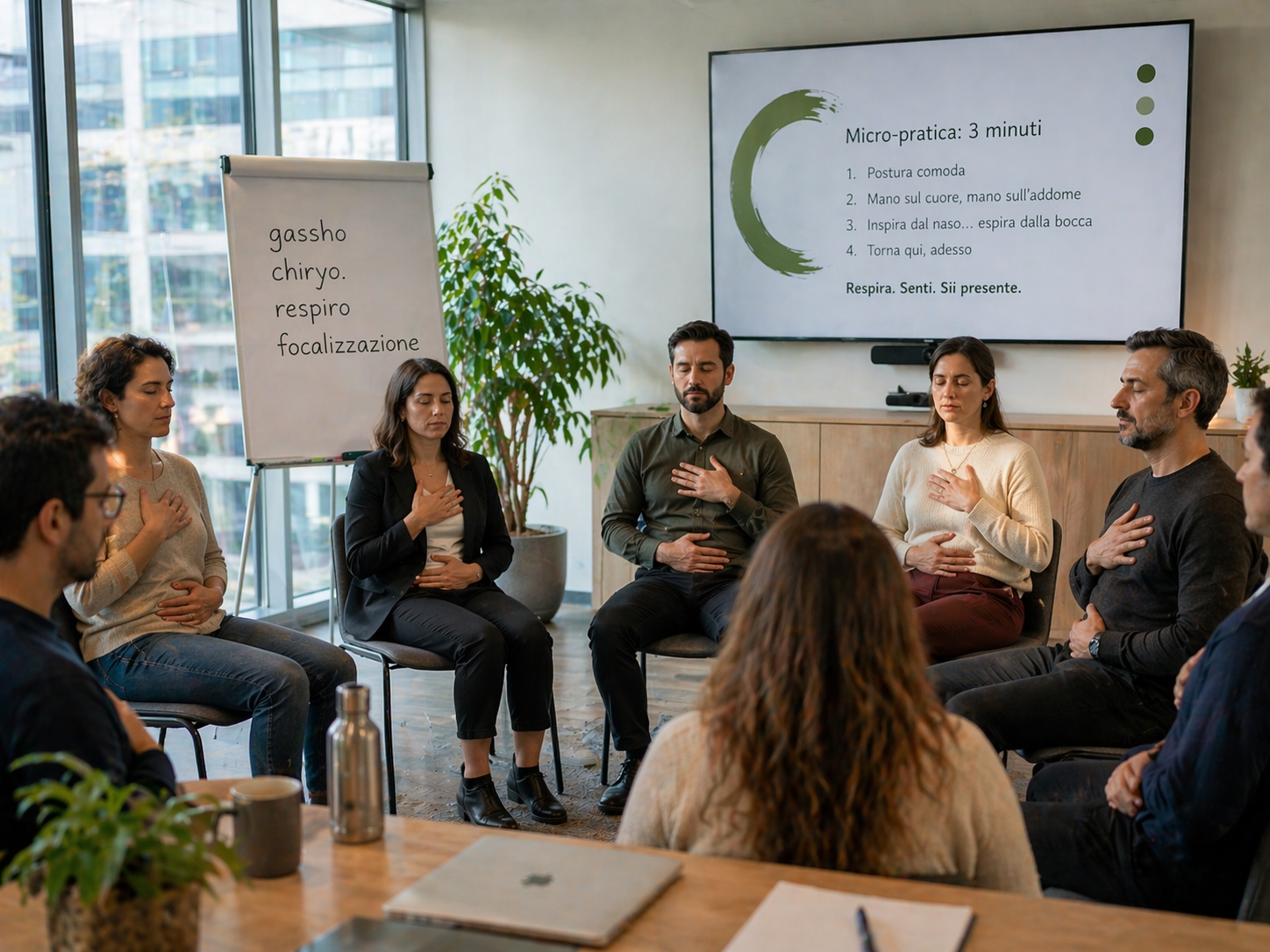È una pratica corporea e relazionale che allena attenzione, respiro e presenza: tre risorse chiave per team che devono comunicare con chiarezza, prendere decisioni sotto pressione e mantenere un clima cooperativo.